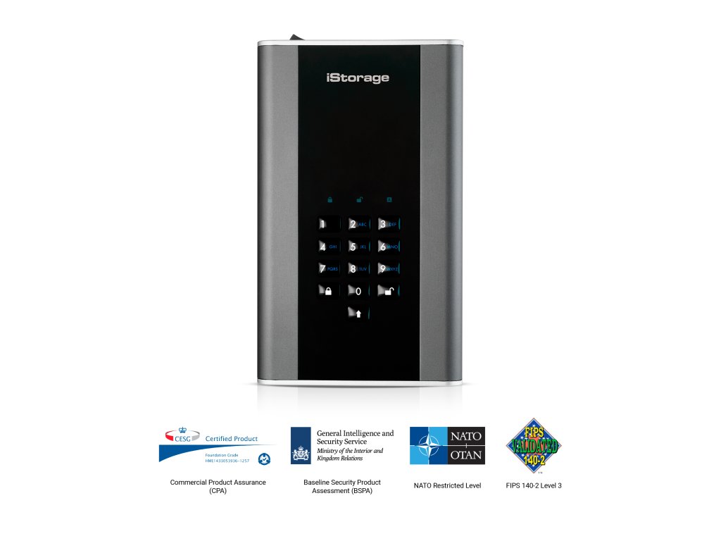IStorage diskAshur DT využívá vojenský stupeň XTS-AES 256-bit hardwarového šifrování, který zašifruje veškerá data uložená na disku v reálném čase. V případě, že by byl disk ztracen nebo odcizen, může si být uživatel jist, že všechny údaje obsažená na disku jsou v bezpečí.